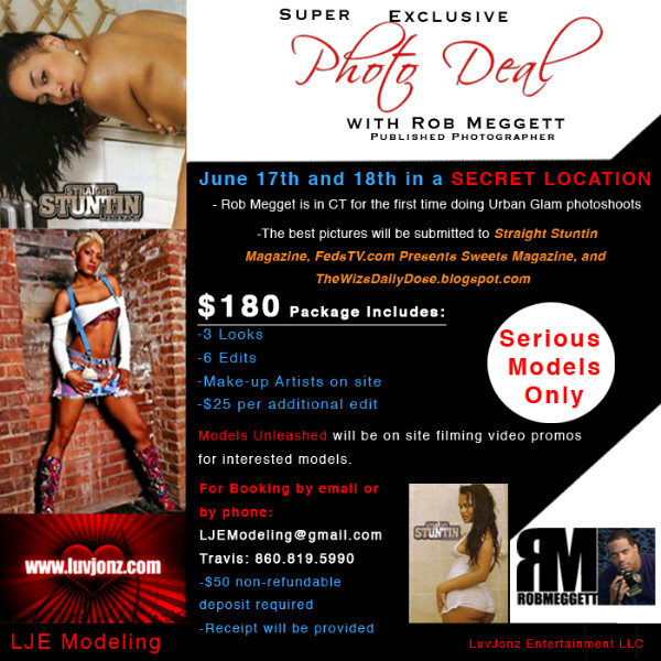 Power Shoot going down in Connecticut this month June 17th thru the 18th presented by LuvJon Entertainment featuring photographer Rob Meggett. The best images will be submitted to Major Magazines and her at the Blog site and the wizsdailydose.com when it fully launches